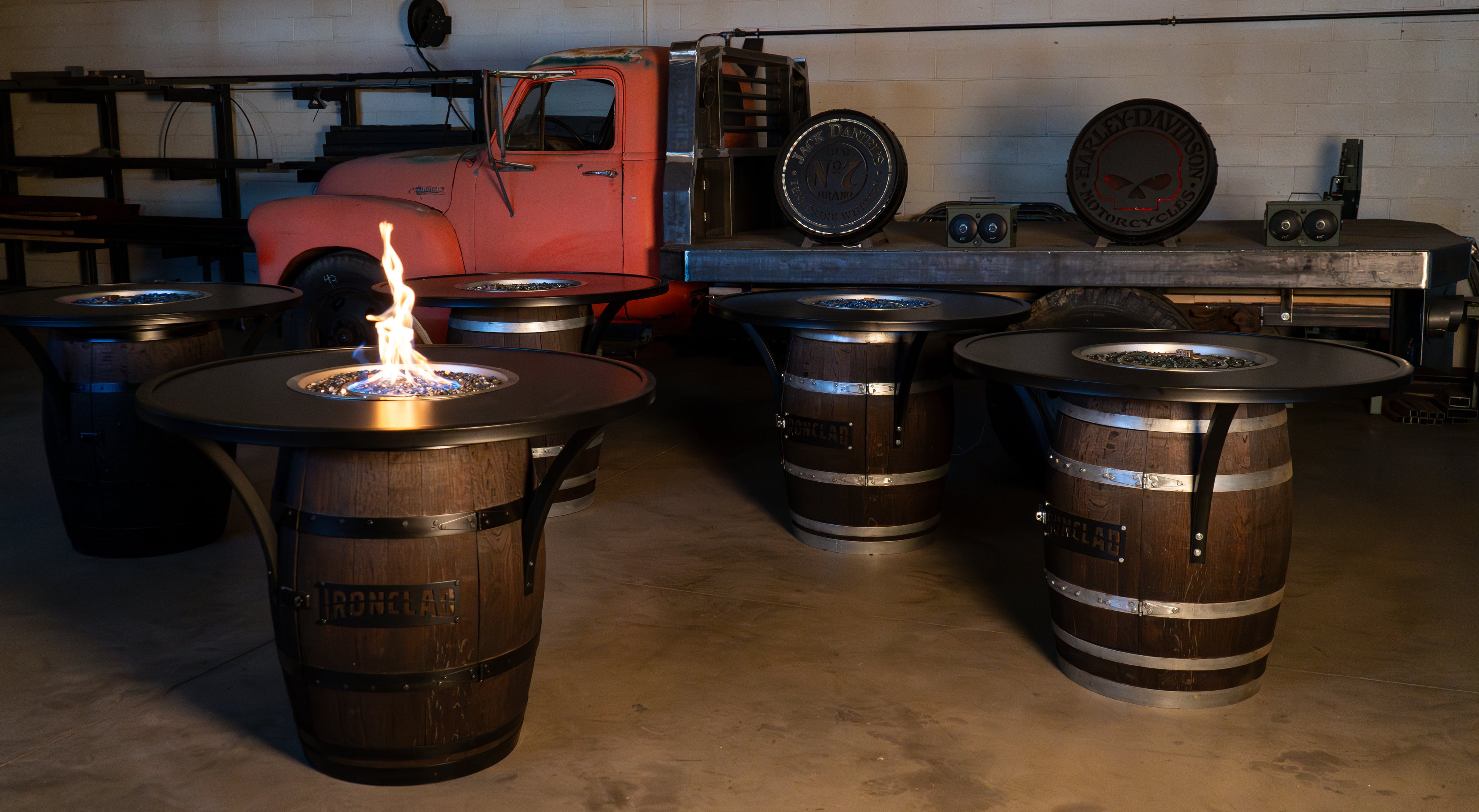 We’ve transformed genuine aged whiskey barrels and raw steel into the fire tables you need to complete your whiskey-themed patio, restaurant, or event venue.